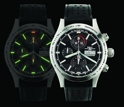 Zifferblatt / Zeiger: schwarz matt, Flansch mit Alarmskala, Dreiecke an Pos. 3 Std. Für die Drehrichtung der Krone zur schnellen Einstellung, arabische Ziffern und Stunden- / Minutenzeiger mit Superluminova weiß mit grünem Leuchten im Dunkeln, 30-Minuten-Zähler an Pos. 12 h, 12-Stunden-Zähler an Pos. 6 h, Chronographfunktion Zeiger in Weiß.